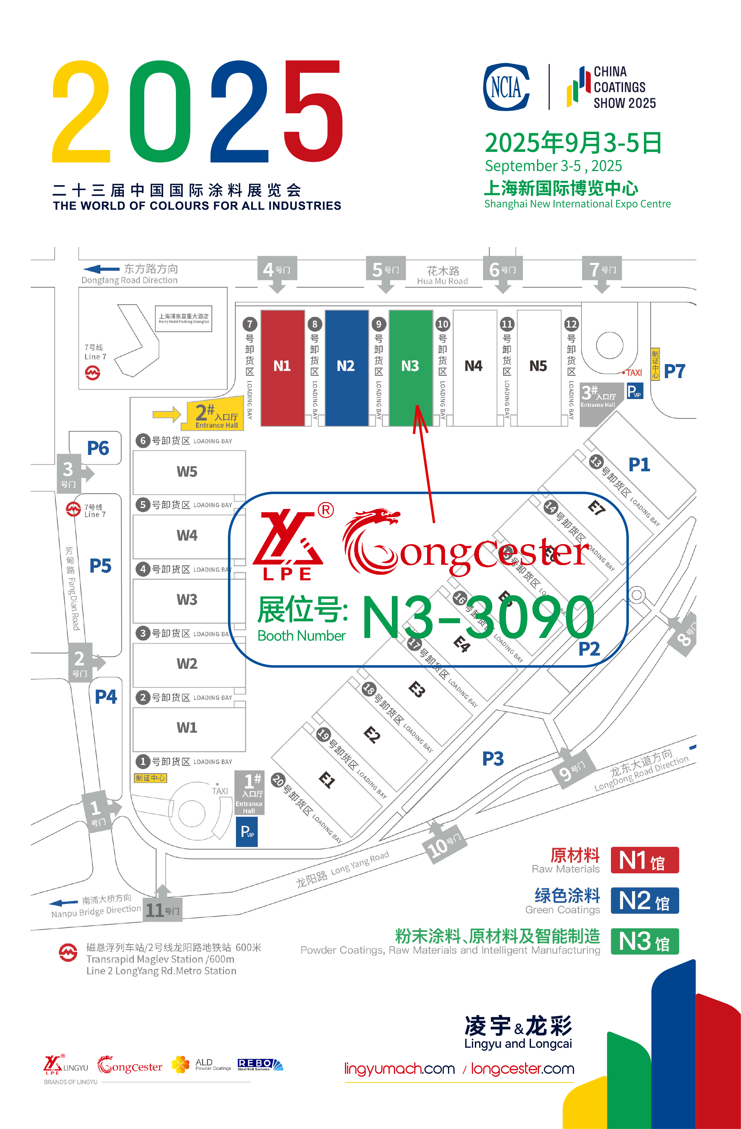 作为中国粉末涂料加工设备及原材料领域的代表性企业,凌宇机械与龙彩新材料将亮相本届展会,展位号N3-3090。